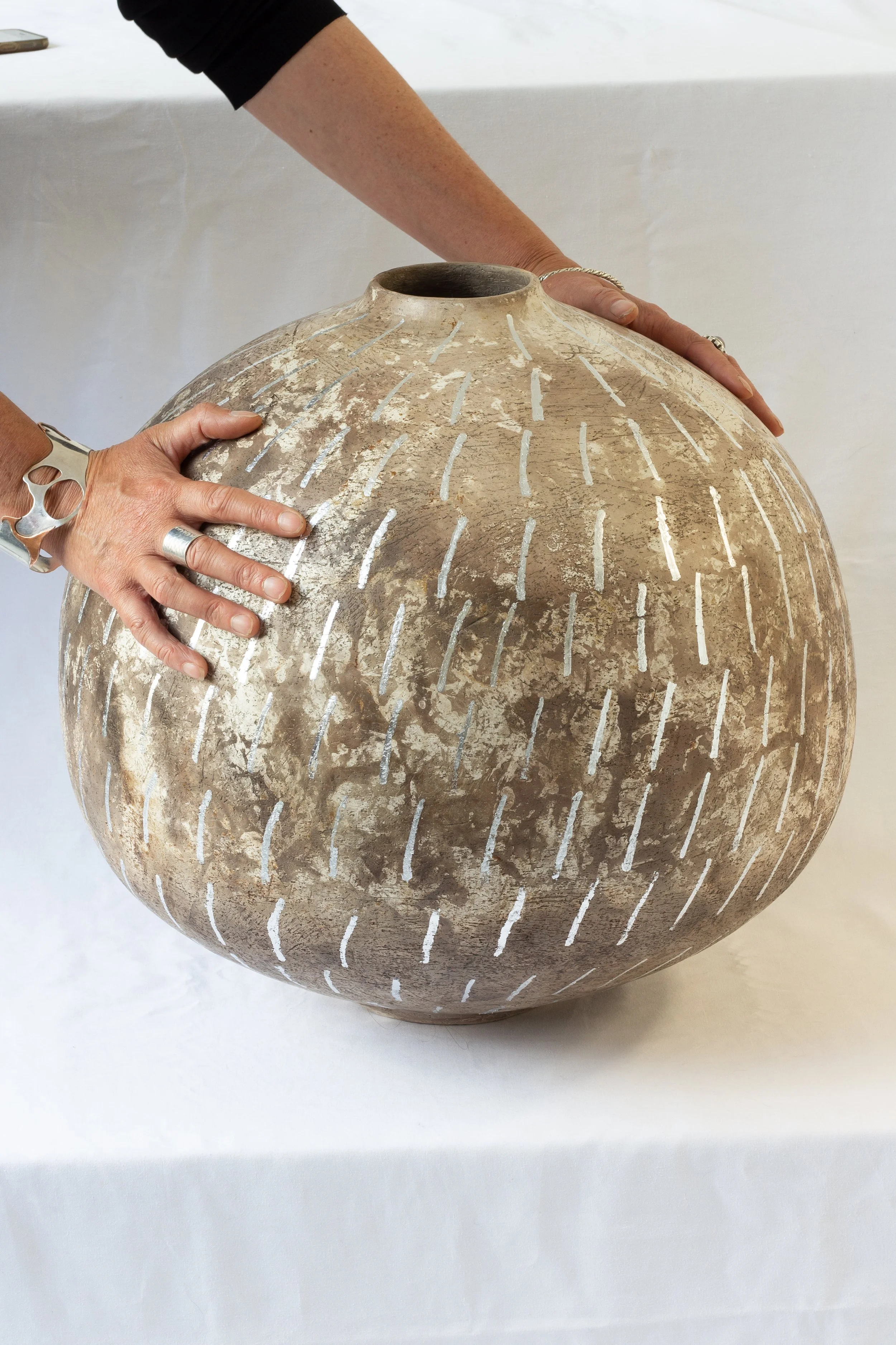 Desert Sky | Hand coiled, burnished & smoke fired ceramic vessel | Approx 50cm diameter